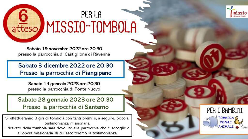 Si effettueranno 3 giri di tombola con tanti premi e, a seguire, piccola testimonianza missionaria.
