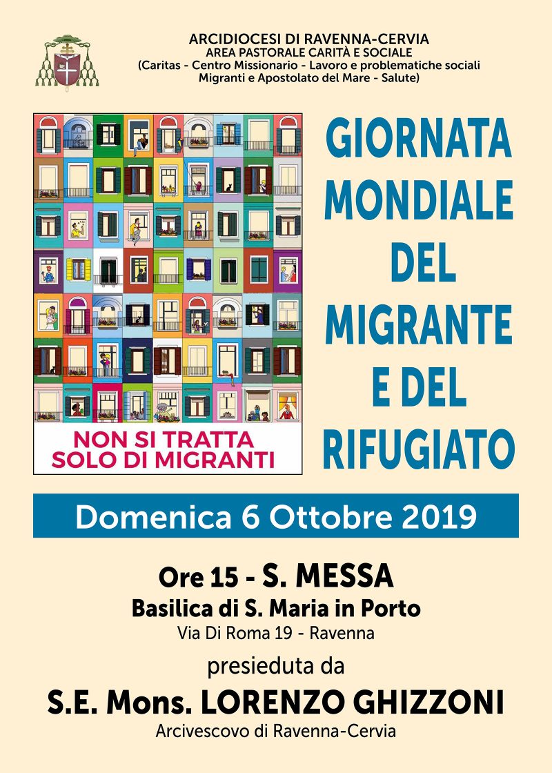 30 Settembre 2019 admindiocesi Domenica 6 ottobre la Giornata Mondiale del Migrante e del Rifugiato Domenica 6 ottobre 2019 alle 15, S.E. Mons. Lorenzo Ghizzoni presiederà la Santa Messa a Santa Maria in Porto nella Giornata Mondiale del Migrante e del Rifugiato FacebookTwitterLinkedinPinterestPrintEmailWhatsapp Locandina