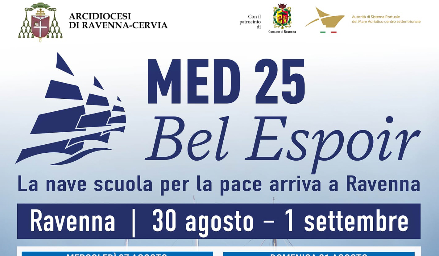 La nave “Le Bel Espoir” salpata da Marsiglia il primo marzo con a bordo 200 giovani che navigheranno nel Mediterraneo per otto mesi per “costruire una cultura del dialogo e della pace”. Tra le tappe che toccherà c’è anche il porto di Ravenna.