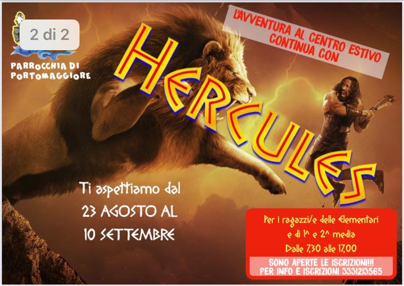 15 Luglio 2021 admindiocesi Hercules, il Grest a Portomaggiore, dal 23 agosto al 10 settembre Sono aperte le iscrizioni al Grest di Portomaggiore per i ragazzi delle elementari e di 1° e 2° media, che si terrà dal 23 agosto al 10 settembre dalle 7.30 alle 17. FacebookTwitterLinkedinPinterestPrintEmailWhatsapp
