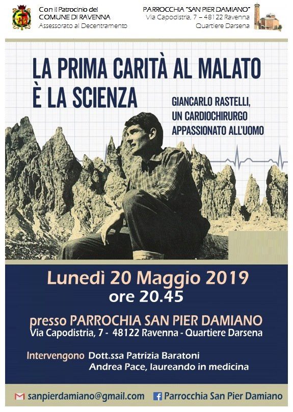 13 Maggio 2019 admindiocesi Il 20 maggio l’incontro dedicato al dott. Rastelli “La prima carità al malato è la scienza” Lunedì 20 maggio 2019, presso la Parrocchia San Pier Damiano, si terrà l’incontro dedicato al dott. Giancarlo Rastelli “La prima carità al malato è la scienza” Per informazioni: sanpierdamiano@gmail.com FacebookTwitterLinkedinPinterestPrintEmailWhatsapp