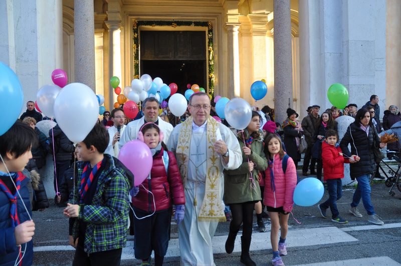 La benedizione del Bambinello, la cui immagine è stata distribuita all’ingresso preannuncia il prossimo Natale e l’atmosfera di raccoglimento e preghiera che lo deve precedere nell’attesa. Don Alain Gonzales Valdez, responsabile del Centro missionario diocesano e direttore della Caritas, ha invitato i ragazzi all’impegno concreto di raccogliere, anche in parrocchia, offerte per aiutare i bambini disabili e ammalati del Centro di Accoglienza di Mokamba, Africa, in Burundi. L’Azione Cattolica dei Ragazzi ha espresso solennemente davanti al Vescovo l’intenzione di seguire ogni giorno Gesù con gioia e di impegnarsi nella propria comunità. Usciti poi all’aperto, i Vigili del Fuoco, hanno offerto fra gli applausi, un cesto di fiori bianchi a Maria, e il lancio di tanti palloncini colorati, accompagnato dagli applausi dei bambini, ha coronato questo bel pomeriggio di festa. La Madonna benedicente dall’alto, sicuramente protegge i suoi figli ravennati.