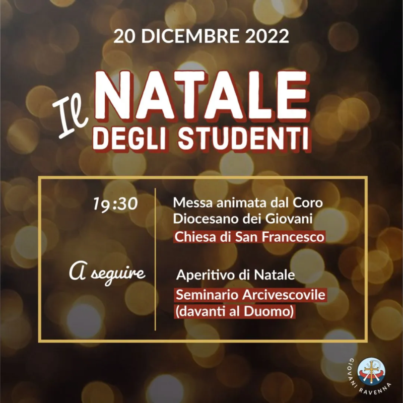 Tutti gli studenti delle scuole superiori e gli universitari sono invitati a questa messa in stile natalizio per salutare l’inizio delle feste e scambiarci gli auguri.
