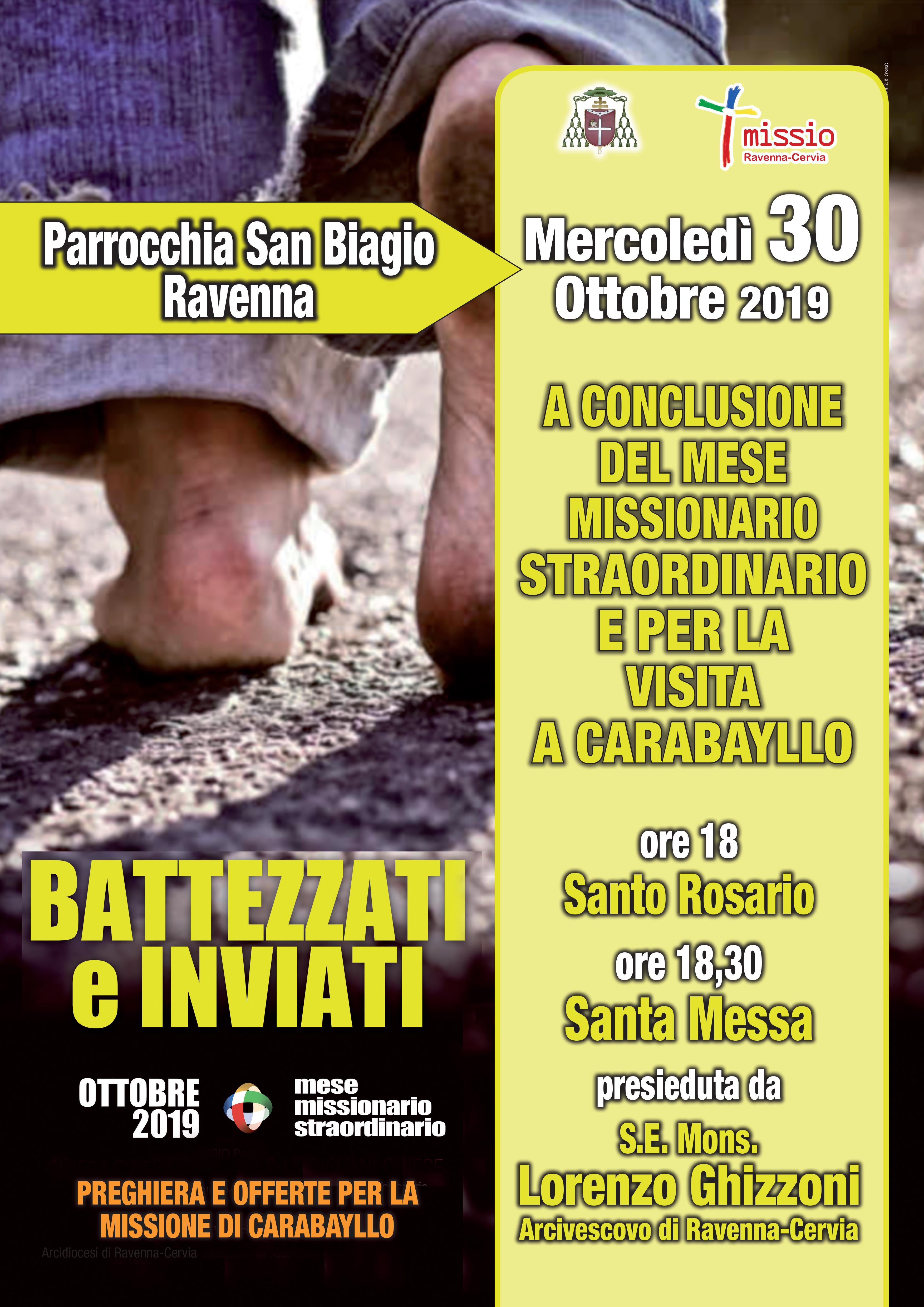 11 Ottobre 2019 admindiocesi Mercoledì 30 ottobre 2019: Preghiera e offerte per la missione di Carabayllo Parrocchia San Biagio Ravenna A conclusione del mese missionario straordinario e per la visita a Carabayllo ore 18 Santo Rosario ore 18,30 Santa Messa presieduta da S.E. Mons. Lorenzo Ghizzoni Arcivescovo di Ravenna-Cervia FacebookTwitterLinkedinPinterestPrintEmailWhatsapp