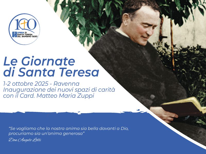 Ore 18.00 presso il Teatro di Santa Teresa Convegno ”Don Lolli e le figure femminili dell’Opera Santa Teresa del Bambino Gesù” con don Alessandro Andreini, della comunità di San Leolino (Fiesole), collaboratore della Causa di Beatificazione di don Angelo Lolli.
