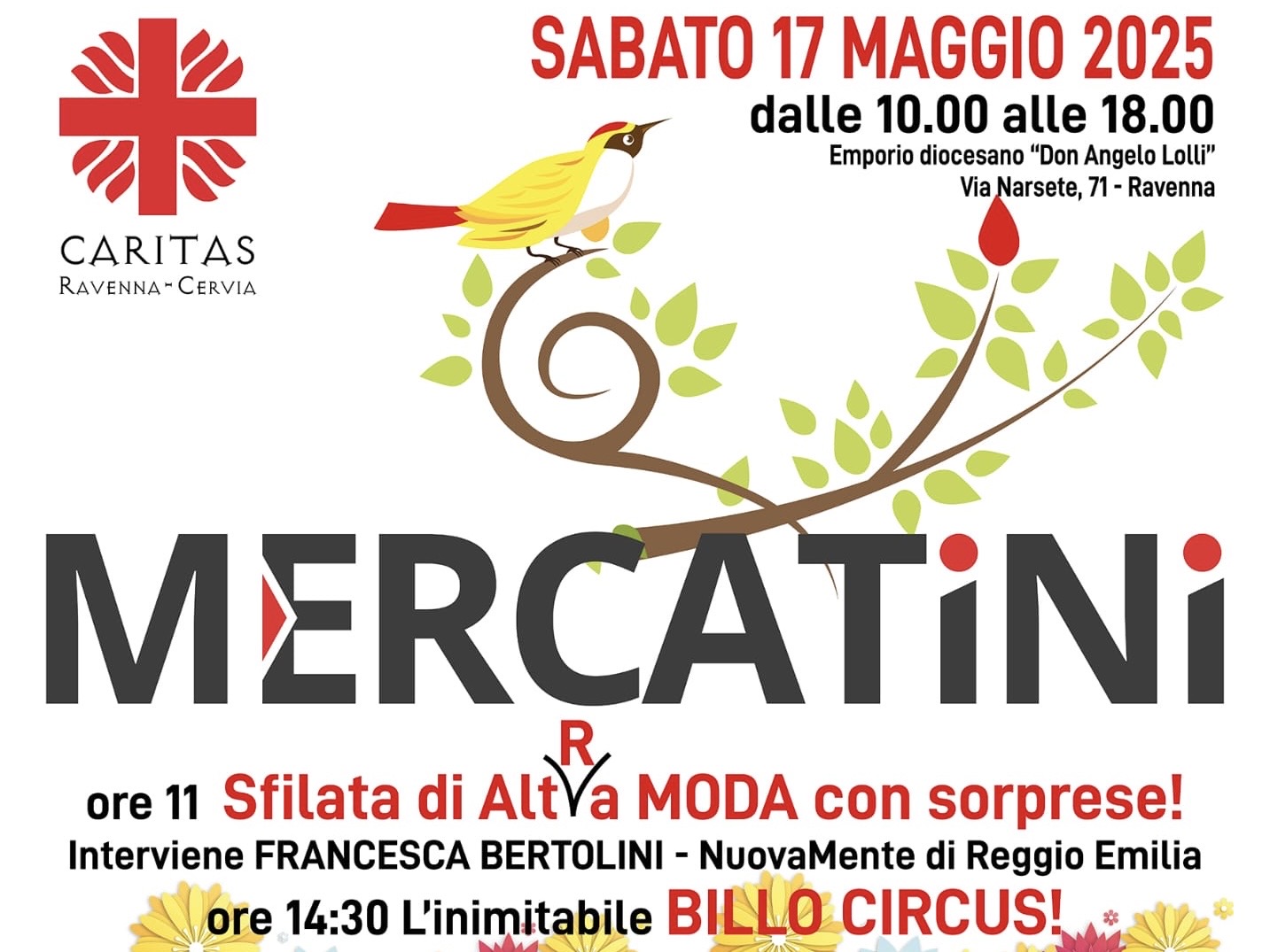 10 Maggio 2024 admindiocesi 17 maggio: Mercatini Caritas dalle 10 alle 18. Emporio diocesano “Don Angelo Lolli” via Narsete, 71 – Ravenna. Ulteriori dettagli sul volantino Info: Ufficio Caritas 0544.212602 – Mercatino 0544.1885119 FacebookTwitterLinkedinPinterestPrintEmailWhatsapp Volantino