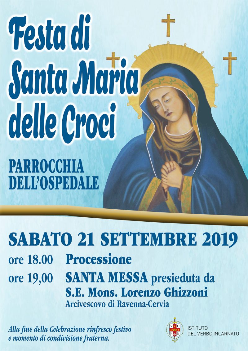 10 Settembre 2019 admindiocesi Sabato 21 settembre Festa di Santa Maria delle Croci Festa di Santa Maria delle Croci Parrocchia dell’Ospedale Sabato 21 settembre 2019 ore 18.00 Processione ore 19,00 Santa Messa presieduta da S .E. Mons. Lorenzo Ghizzoni Arcivescovo di Ravenna-Cervia FacebookTwitterLinkedinPinterestPrintEmailWhatsapp