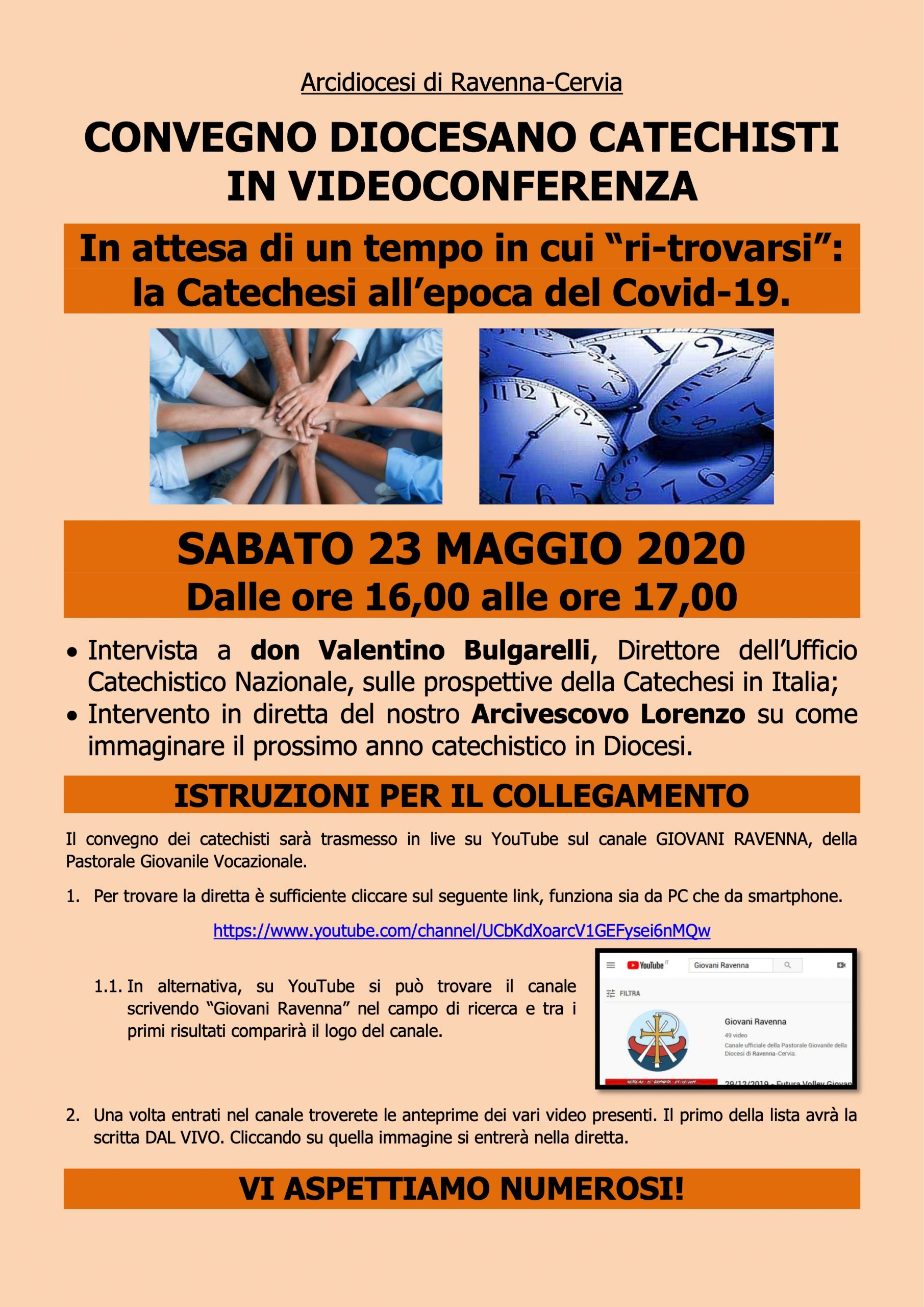 Sabato 23 maggio 2020 dalle 16 alle 17 ci sarà il Convegno diocesano catechisti: “In attesa di un tempo in cui “ri-trovarsi”: la Catechesi all’epoca del Covid-19″