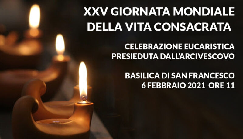 10 Gennaio 2021 admindiocesi Sabato 6 febbraio a S. Francesco la Celebrazione Eucaristica per la XXV Giornata mondiale della Vita Consacrata XXV Giornata mondiale della Vita Consacrata Celebrazione Eucaristica presieduta dall’Arcivescovo Basilica di San Francesco 6 febbraio 2021 ore 11 FacebookTwitterLinkedinPinterestPrintEmailWhatsapp Messaggio per la XXV Giornata Mondiale della Vita Consacrata