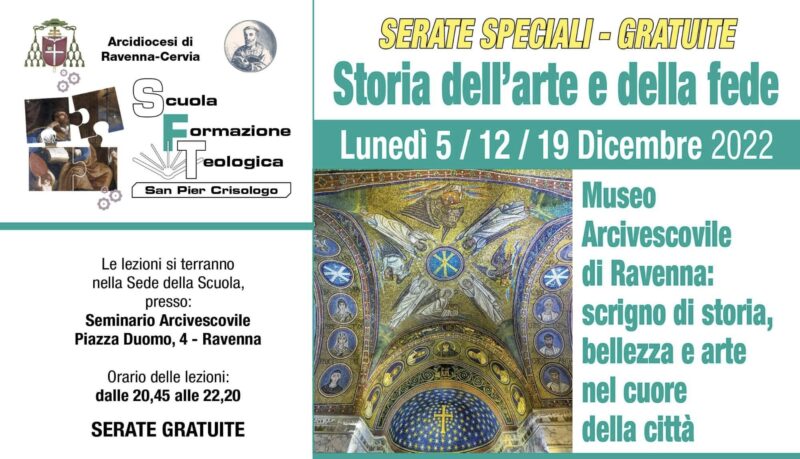 A partire dal 𝟓 𝐃𝐢𝐜𝐞𝐦𝐛𝐫𝐞 𝟐𝟎𝟐𝟐 inizierà il ciclo di incontri settimanali dedicati alla storia dell’arte e della fede presso il Museo Arcivescovile di Ravenna.