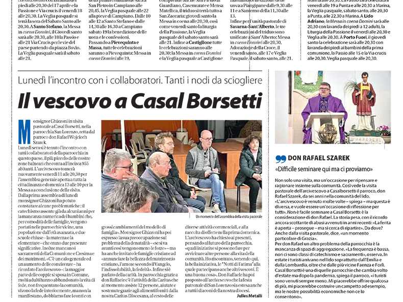 Parrocchia di S. Lorenzo, Casal Borsetti 7-13 aprile 2025 Visita Pastorale di Mons. Lorenzo Ghizzoni, Arcivescovo di Ravenna-Cervia Tutto il programma sul volantino