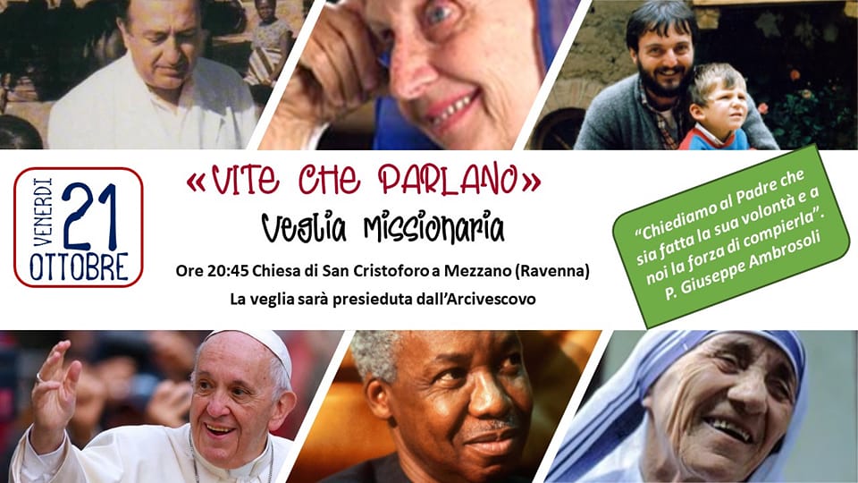 10 Luglio 2022 admindiocesi Venerdì 21 ottobre la Veglia Missionaria Venerdì 21 ottobre 2022 ore 20.45 Parrocchia di San Cristoforo, Mezzano “Vite che parlano” Veglia Missionaria presieduta dall’Arcivescovo Mons. Lorenzo Ghizzoni FacebookTwitterLinkedinPinterestPrintEmailWhatsapp