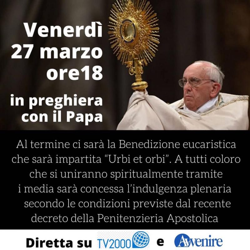 Venerdì 27 marzo 2020 alle ore 18 in preghiera con il Papa