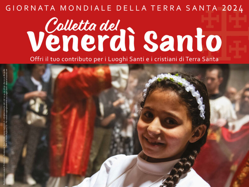 La Colletta per la Terra Santa è una raccolta a favore delle opere e delle necessità della Terra Santa. Sarà devoluta ai nostri fratelli della Chiesa di Terra Santa, sia per il mantenimento dei santuari, ma soprattutto per le opere pastorali assistenziali, educative, sociali in questo difficile tempo di guerra.