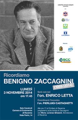 Ricordiamo ai lettori che lunedì 3 novembre alle ore 17.45, presso la Sala Cavalcoli della Camera di Commercio di Ravenna, si terrà l’incontro “Ricordiamo Benigno Zaccagnini”, a cui parteciperà l’on. Enrico Letta. Sarà presente l’arcivescovo Mons. Lorenzo Ghizzoni; coordinerà i lavori l’on. Pier Luigi Castagnetti.