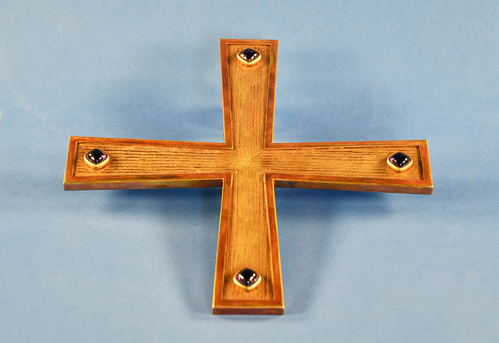 donata da Paolo VI nel 1965, per la tomba di Dante in occasione del settimo centenario della sua morte. La croce greca, con quattro ametiste incastonate alle estremità, di cui è stato ultimato recentemente il restauro, è stata ricollocata al di sopra della lastra marmorea di Pietro Lombardo. La delegazione diocesana donerà al Papa un mosaico raffigurante la Vergine Orante, il cui originale è conservato al Museo Arcivescovile.