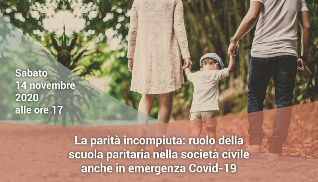 Le associazioni dei genitori AGeSC e AGE, in collaborazione con il Comitato Sì alla Famiglia di Modena, organizzano il webinar “La parità incompiuta: ruolo della scuola paritaria nella società civile anche in emergenza Covid-19”, in programma il prossimo 14 novembre alle ore 17:00. Per iscrizioni collegarsi al link: