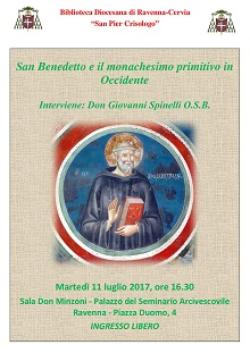 Questo è il secondo, ma il primo di quest’anno, di una serie di incontri del progetto “I grandi della cultura cristiana”, avviato alla fine dell’anno scorso dalla Biblioteca Diocesana di Ravenna-Cervia “San Pier Crisologo”, dedicato all’indagine e alla divulgazione dei grandi personaggi che dalle origini fino ai nostri giorni hanno segnato il percorso e lo sviluppo del Cristianesimo, in una prospettiva storica e culturale, contribuendo di conseguenza in modo determinante all’evoluzione principalmente del pensiero filosofico e teologico e dell’esperienza umana in generale. In questo incontro, che si terrà martedì 11 luglio alle ore 16.30 in seminario, si tratterà della figura di San Benedetto da Norcia (Norcia 480 ca.-Montecassino 547 ca.), fondamentale per la storia del monachesimo occidentale e in definitiva per l’evangelizzazione da sud a nord del continente europeo.San Benedetto non è l’inventore del monachesimo né orientale né occidentale. La sua Regola monastica fu preceduta, anche in Occidente, da molte altre a cominciare da quella di Sant’Agostino, dalla quale in parte dipende. Tuttavia egli è chiamato patriarca del monachesimo occidentale e patrono d’Europa, perché la sua Regola, a partire dall’epoca di Carlo Magno, divenne normativa per tutti i monasteri dell’Impero, quindi radice religiosa e culturale della civiltà europea per tutto il Medioevo.