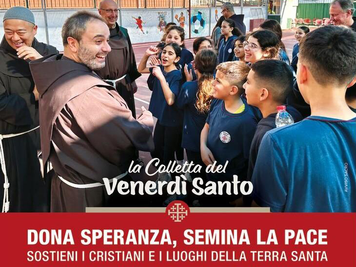 Il prossimo 18 aprile 2025, in occasione del Venerdì Santo, si svolgerà in tutto il mondo la tradizionale «Colletta Pro Terra Sancta». Attraverso questa raccolta, la Custodia di Terra Santa sostiene la tutela dei Luoghi Santi – le pietre della memoria – e la presenza dei cristiani in quei territori – le pietre vive –, promuovendo iniziative di solidarietà e assistenza.