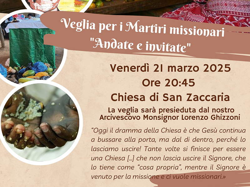 La veglia sarà presieduta dal nosto Arcivescovo Mons. Lorenzo Ghizzoni