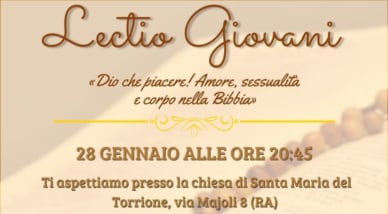 News 24/11/2021 Venerdì 28 gennaio al Torrione la Lectio Giovani Lectio Giovani “Dio che piacere! Amore, sessualità e corpo nella Bibbia” 28 gennaio dalle 20.45, Santa Maria del Torrione Volantino