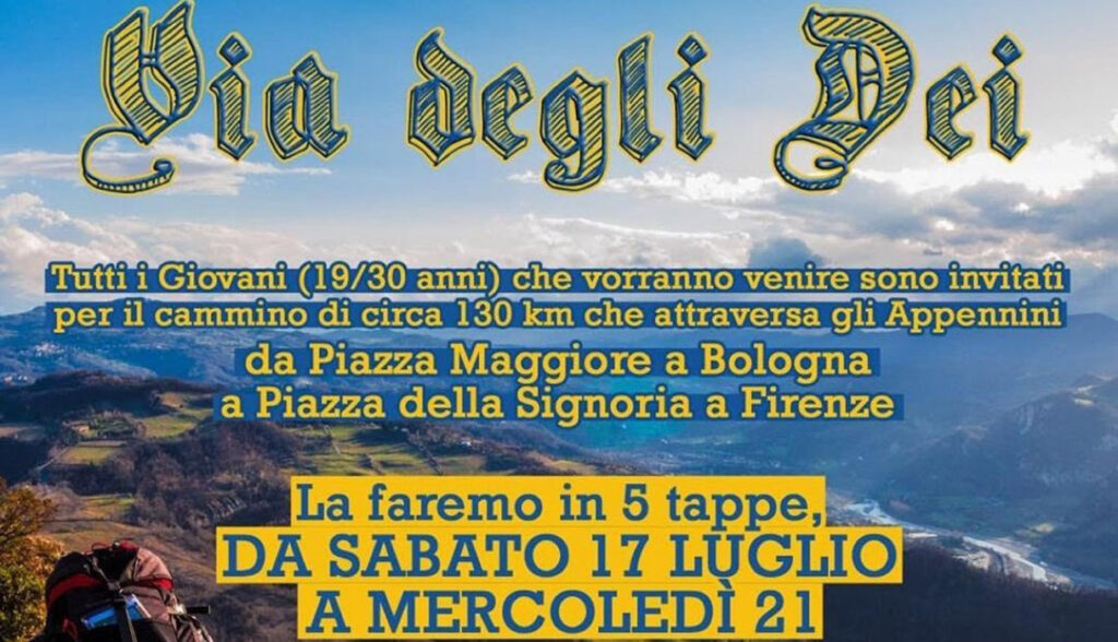Via degli Dei: un cammino in 5 tappe per i giovani, dal 17 al 21 luglio